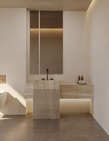 源于亿万年浑然天成,集天地沉淀之精华灵气,承载数千载文化风韵,「Tenes•提奈斯」以天然洞石为灵感进行创新,别具一格的斜切肌理,让砖面层次感强烈而丰富,纹路细腻而深邃,焕发着独特而优雅的美感。