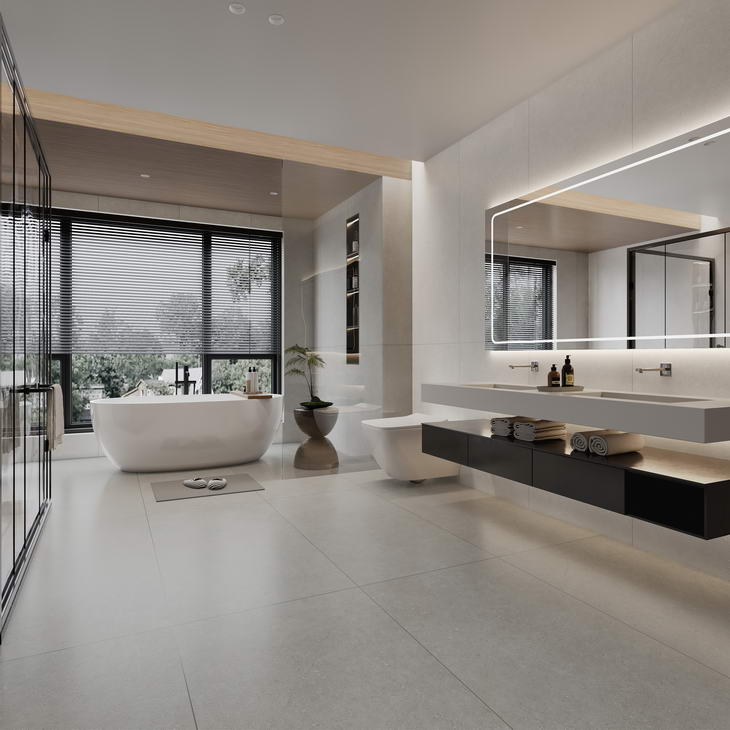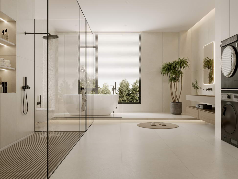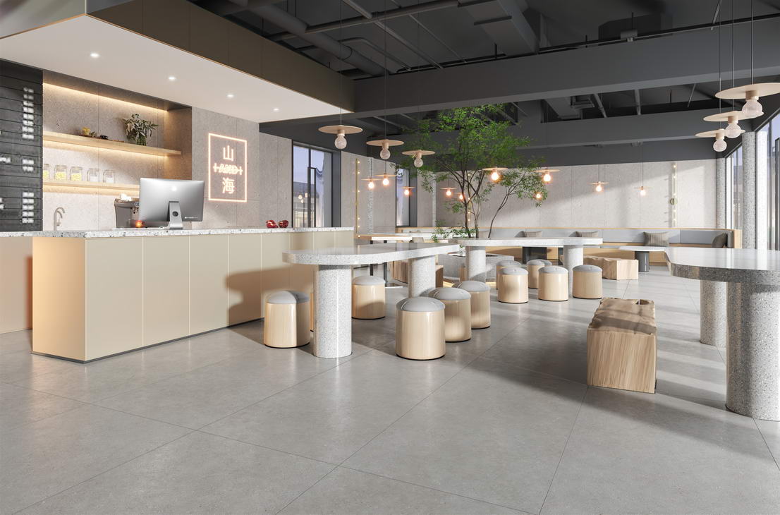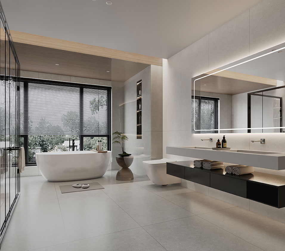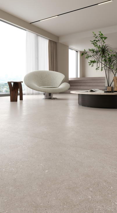 以细腻温柔的砂砾肌理为设计灵感,摒弃繁杂的表现形式,通过简约纯粹的瓷砖设计语言,将独特的自然质感与低饱和度的奶油色系完美融合,赋予空间一种崭新的力量与温度。
