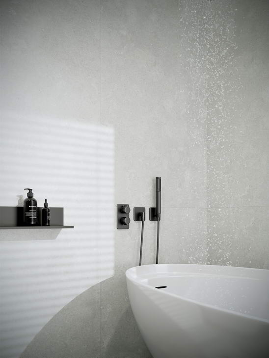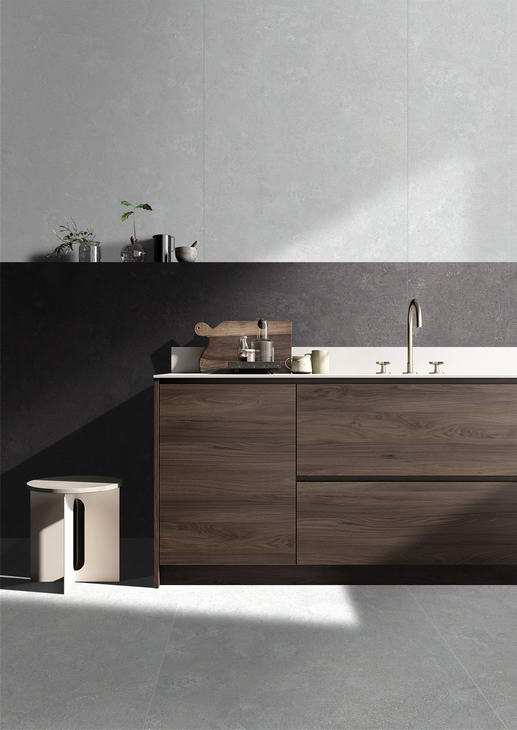 以莱姆石为素材,将现代人对自然及珍稀石材的渴望,融入到瓷砖设计中,从肌理、光感、触感、色彩、工艺,对产品进行多维度人文重塑,探寻时光的印迹,再造别致温婉的表面触感。